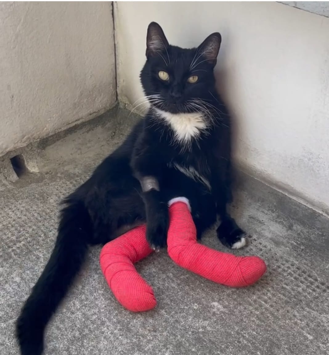 This is Finn- This brave little guy was found on the streets of Dubai as a two-month-old kitten, suffering from an injured leg (radial nerve damage), likely due to a car accident. He faced even more challenges with Parvo, Giardia, and ringworm infections. Despite all this, Finn was fortunate to find a loving owner who brought him to Germany and took loans to cover his medical care. His story is truly inspiring, and we're pleased to support them with his veterinary bills since he still has a long way of recovery.